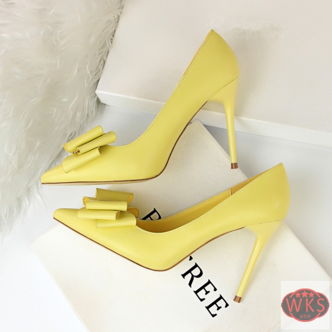 c11178a latest design bowknot lady high heel shoe jobs leather dress shoe