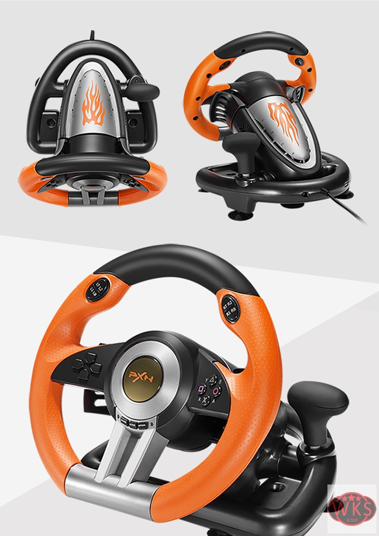 3. Imitation racing wheel ergonomics design, 180 turning angles and rubber grip(Note: Only Rotate 90 degree left and right).