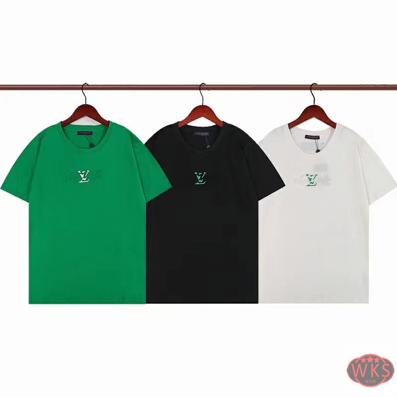 Louis Vuitton 2022 early spring new classic elements spell green pressure concave convex collar short sleeved T-shirt heavy technology from fabric to detail according to the counter genuine copy , This can be said to be high quality, 220 grams, get the hand can compare the texture of other versions, Easy to wear, INS super red upper body, this year's latest design is invincible good-looking, this spring and summer essential basic single product, each piece is wearing a strong sense of short tee design, strongly recommended